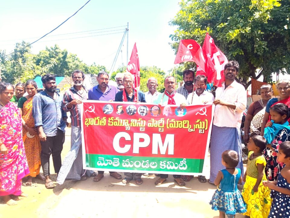 మోతే : పెద్దమ్మ, డబల్ బెడ్ రూమ్ కాలనీలలో నెలకొన్న మౌలిక సమస్యలు తక్షణమే పరిష్కరించాలని సిపిఎం జిల్లా కార్యదర్శి వర్గ సభ్యులు మట్టిపల్లి సైదులు డిమాండ్ చేశారు. శనివారం మోతే మండల కేంద్రంలో సిపిఎం పోరుబాటలో భాగంగా పెద్దమ్మల కాలనీ, డబల్ బెడ్ రూమ్ కాలనీలలో నెలకొన్న ప్రజా సమస్యలపై సర్వే నిర్వహించారు. ఈ సందర్భంగా ఆయన మాట్లాడుతూ పెద్దమ్మల కాలనీలలో 40 కుటుంబాలకు పైగా పెద్దమ్మల వృత్తి చేసుకునే గత 30 సంవత్సరాలుగా నివాసం ఉంటున్నాయని వారికి సొంత ఇల్లు లేక చీరలు చుట్టుకొని నివాసం ఉంటున్నారని అన్నారు. వీరికి ప్రభుత్వం వెంటనే ఇందిరమ్మ ఇల్లు మంజూరు చేయాలన్నారు. కాలిని లలోమురికి కాలువలు, మరుగుదొడ్లు లేకపోవడంతో దోమలు, ఈగలు వృద్ధి చెంది ప్రజలు అంటువ్యాధులు, విష జ్వరాల బారిన పడుతున్నారని ఆవేదన వ్యక్తం చేశారు. ఒకే స్తంభానికి 40 కరెంటు లైన్లు తీయడం మూలంగా కరెంటు డిమ్ము రావడంతో తీవ్ర ఇబ్బందులు పడుతున్నారని ప్రభుత్వం తక్షణమే ఒక ట్రాన్స్ ఫారం ఏర్పాటు చేసి స్తంభాలు పాతి వైర్లు కలపాలన్నారు. డబల్ బెడ్ రూమ్ ఇండ్లలో సిసి రోడ్లు లేకపోవడంతో బజార్లలో నీళ్లు నిలువ ఉండటం వల్ల రోడ్లు బురదమయం కావడంతో వృద్ధులు, పిల్లలు నడిచే పరిస్థితి లేదన్నారు. డబల్ బెడ్ రూమ్ ఇళ్లలో కనీస సౌకర్యాలైన త్రాగునీరు, డ్రైనేజీ, విద్యుత్ వంటి సౌకర్యాలు వెంటనే కల్పించాలన్నారు. ప్రజా సమస్యలు పరిష్కరించాలని డిమాండ్ చేస్తూ ఈ నెల 8న మోతే తాసిల్దార్ కార్యాలయం ముందు జరిగే ధర్నాకు ప్రజలు వేలాదిగా తరలివచ్చి విజయవంతం చేయాలని పిలుపునిచ్చారు. ఈ సందర్భంగా డబల్ బెడ్ రూమ్ ఇండ్లలో ని వీధుల్లో వరి నాట్లు వేసి నిరసన వ్యక్తం చేశారు.ఈ కార్యక్రమంలో సిపిఎం మండల కార్యదర్శి ములుకూరి గోపాల్ రెడ్డి మండల కమిటీ సభ్యులు గుంట గాని ఏసు, శాఖ కార్యదర్శి దోసపాటి శ్రీనివాస్, నాయకులు తురుక నాగమ్మ, దోసపాటి చిన్న శ్రీను, మేకల జగ్గయ్య, శoబయ్య, కోట రమేష్, పోశయ్య, రాములు, అనసూర్య, జ్యోతి, సమ్మక్క, కోటయ్య పాల్గొన్నారు.