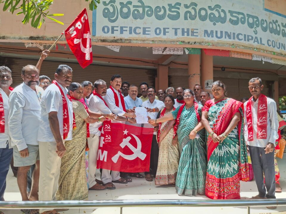 అర్హులైన వారందరికీ నిర్మించిన డబల్ బెడ్ రూమ్ ఇండ్లు పంపిణీ చేయాలి సిపిఎం జిల్లా కార్యదర్శి మల్లు నాగార్జున రెడ్డి అర్హులైన వారందరికీ నిర్మించిన డబల్ బెడ్ రూమ్ ఇండ్లు పంపిణీ చేయాలి సోమవారం సూర్యాపేట మున్సిపాలిటీ కార్యాలయం ముందు ధర్నా మరియు సూర్యాపేట తాసిల్దార్ కార్యాలయం ముందు ధర్నా నిర్వహించినారు ఈ సందర్భంగా సిపిఎం జిల్లా కార్యదర్శి మల్లు నాగార్జున రెడ్డి గారు మాట్లాడుతూ సూర్యాపేట పట్టణంలో మరియు రూరల్ మండలంలో నిర్మించిన డబుల్ బెడ్ రూమ్ ఇండ్లు అర్హులైన వారికి ఇవ్వకుండా ఉండడం వల్ల నిరుపయోగంగా ఉండటంవల్ల శిథిల వ్యవస్థకు మారుతున్నాయి అండర్ గ్రౌండ్ డ్రైనేజీ కొరకు తవ్వి తీసిన రోడ్లు నిర్మించని కారణంగా రోడ్లు మొత్తం గుంతల మాయమై ప్రజలు ఇబ్బందులు ఎదుర్కొంటున్నారు అన్నారు సూర్యాపేట పట్టణానికి శివారు ప్రాంతంలో నిర్మించిన కాలనీలో నిర్మించిన మంచినీటి ట్యాంకులలో నీటి సౌకర్యం కల్పించని కారణంగా ప్రజలు ఇబ్బంది పడుతుందని అన్నారు సీజనల్ వ్యాధులతో ప్రజలు అనారోగ్యానికి గురి అవుతారు సకాలంలో వైద్య సౌకర్యం అందించడం లేదని ప్రభుత్వం విఫలం చెందిందన్నారు పట్టణంలో వీధి కుక్కలు కోతుల సమస్యలు తోటి ప్రజలు ఇబ్బందులు ఎదుర్కొంటున్నారని ఆవేదన వ్యక్తం చేశారు పై సమస్యలను వెంటనే ప్రభుత్వం పరిష్కరించాలని డిమాండ్ చేశారు లేనియెడల భవిష్యత్తులో సంబంధిత అధికారులను ముట్టడిస్తామని హెచ్చరించినారు ఈ కార్యక్రమంలో సిపిఎం జిల్లా కార్యదర్శి వర్గ సభ్యురాలు చెరుకు ఏకలక్ష్మి సిపిఎం జిల్లా కమిటీ సభ్యులు మేకనబోయిన శేఖర్ కొప్పుల రజిత ఎలుగూరి గోవిందు మద్దెల జ్యోతి సిపిఎం టూ టౌన్ కార్యదర్శి పిండిగ నాగమణి సిపిఎం 3 టౌన్ కార్యదర్శి చిట్లింకి యాదగిరి రూరల్ మండల కార్యదర్శి మే రెడ్డి కృష్ణారెడ్డి మండల కమిటీ సభ్యులు మేకనబోయిన సైదమ్మ మందడి రామ్ రెడ్డి నాగిరెడ్డి శేఖర్ రెడ్డి పందిరి సత్యనారాయణరెడ్డి బోళ్ల నాగేందర్ రెడ్డి కామల్ల లింగయ్య నారాయణ వీరారెడ్డి నల్ల మేకల అంజయ్య జనగాం సత్తయ్య చెరుకు సత్యం తీగల లింగయ్య శీను తదితరులు పాల్గొన్నారు