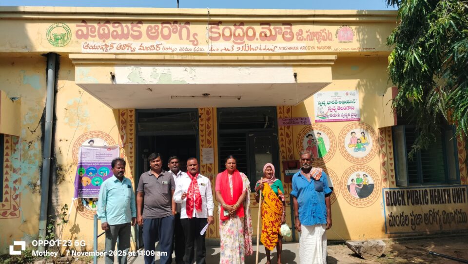 : మోతె మండల కేంద్రంలోని ప్రాథమిక ఆరోగ్య కేంద్రంలో నెలకొన్న మౌలిక సమస్యలు వెంటనే పరిష్కరించాలని తెలంగాణ వ్యవసాయ కార్మిక సంఘం జిల్లా ప్రధాన కార్యదర్శి మట్టి పెల్లి సైదులు ప్రభుత్వాన్ని డిమాండ్ చేశారు. శుక్రవారం తెలంగాణ వ్యవసాయ కార్మిక సంఘం మోతె మండల కమిటీ ఆధ్వర్యంలో జిల్లా కమిటీ పిలుపులో భాగంగా మోతె ప్రభుత్వ ప్రాథమిక ఆరోగ్య కేంద్రంలో నెలకొన్న సమస్యలపై సర్వే నిర్వహించారు. ఈ సందర్భంగా ఆయన మాట్లాడుతూ ప్రాథమిక ఆరోగ్య కేంద్రంలో సౌకర్యాలు మెరుగుపరచాలని కోరారు. రోగులు తాగటానికి మంచినీళ్లు లేకపోవడంతో తీవ్ర ఇబ్బందులు పడుతున్నారని ఆవేదన వ్యక్తం చేశారు. ఖాళీగా ఉన్న పోస్టులను వెంటనే భర్తీ చేయాలన్నారు. మోతె ప్రభుత్వ ప్రాథమిక ఆరోగ్య కేంద్రంలో డయాలసిస్ సెంటర్ ను ప్రారంభించాలన్నారు. ప్రభుత్వ ఆసుపత్రికి ఒక్క అటెండర్ ఉండటం వల్ల రక్షణ కరువైందని ప్రభుత్వం వెంటనే మరొక అటెండర్ ను నియామకం చేయాలన్నారు. ప్రభుత్వ ఆసుపత్రులలో పనిచేస్తున్న ఏఎన్ఎం లను పర్మనెంట్ చేయాలన్నారు. ప్రాథమిక ఆరోగ్య కేంద్రంలో కిటికీలు, తలుపులు లేవన్నారు. ఆసుపత్రి పరిశుభ్రంగా లేకపోవడంతో ఆస్పత్రిలోకి పాములు, తేళ్లు వంటి విషపురుగులు వస్తున్నాయన్నారు. ప్రభుత్వ ఆసుపత్రిలో జనరేటర్ సౌకర్యం లేకపోవడంతో రోగులకు ఇబ్బంది జరుగుతుందన్నారు. ప్రాథమిక ఆరోగ్య కేంద్రాని 50 పడకల ఆసుపత్రిగా డెవలప్ చేయాలన్నారు. ప్రాథమిక ఆరోగ్య కేంద్రంలో 24 గంటలు వైద్యం అందేలా చర్యలు చేపట్టాలన్నారు. ఈ కార్యక్రమంలో తెలంగాణ వ్యవసాయ కార్మిక సంఘం మహిళా కూలీల జిల్లా కన్వీనర్ జంపాల స్వరాజ్యం, వ్యవసాయ కార్మిక సంఘం మండల కార్యదర్శి కిన్నెర పోతయ్య, సిఐటియు మండల కన్వీనర్ దోస పాటి శ్రీనివాస్, వ్యవసాయ కార్మిక సంఘం మండల నాయకులు చర్లపల్లి మల్లయ్య, మేకల ఉపేందర్ పాల్గొన్నారు.