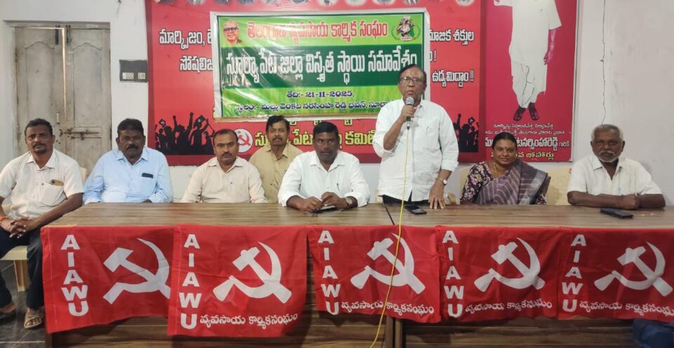 సూర్యాపేట: సంపదను సృష్టిస్తూ దేశానికి అన్నం పెట్టే వ్యవసాయ కార్మికులకు కేంద్ర ప్రభుత్వం సమగ్ర శాసన చట్టం చేయాలని తెలంగాణ వ్యవసాయ కార్మిక సంఘం రాష్ట్ర అధ్యక్షులు జి. నాగయ్య కేంద్ర ప్రభుత్వాన్ని డిమాండ్ చేశారు. శుక్రవారంసూర్యాపేట జిల్లా కేంద్రంలోని మల్లు వెంకట నరసింహారెడ్డి భవన్ లో తెలంగాణ వ్యవసాయ కార్మిక సంఘం జిల్లా స్థాయి శిక్షణ తరగతులను ఆయన ప్రారంభించి మాట్లాడుతూ రెక్కల కష్టం చేసి సంపదను సృష్టిస్తున్న వ్యవసాయ కార్మికుల జీవనం దుర్భరంగా ఉందని ఆవేదన వ్యక్తం చేశారు. దేశానికి స్వాతంత్రం వచ్చి 75 సంవత్సరాలు దాటిన వ్యవసాయ కార్మికులకుతినటానికి తిండి, ఉండటానికి ఇల్లు, కట్టుకోవటానికి బట్ట కరువైందన్నారు. ఎన్నికల ముందు కాంగ్రెస్ ప్రభుత్వం భూమిలేని వ్యవసాయ కార్మికులకు ఏడాదికి 12000 ఇస్తామని వాగ్దానం చేసి అధికారంలోకి వచ్చి 23 నెలలు అవుతున్న ఇచ్చిన వాగ్దానాన్ని అమలు చేయలేదని ఆరోపించారు. అర్హులైన పేదలందరికీ ఇందిరమ్మ ఇండ్లు ఇవ్వాల్సిన ప్రభుత్వం కేవలం కాంగ్రెస్ కార్యకర్తలకే ఇండ్లు మంజూరు చేయటం సిగ్గుచేటు అన్నారు. వ్యవసాయ కార్మికులకు ఉచితంగా విద్య, వైద్యం అందించాలన్నారు. వ్యవసాయ కార్మికులు సంపాదించే సంపాదనలో 90 శాతం విద్య, వైద్యానికి ఖర్చు చేస్తున్నారని అన్నారు. ప్రాథమిక ఆరోగ్య కేంద్రాలలో సౌకర్యాలు మెరుగుపరచాలన్నారు. 50 సంవత్సరాలు నిండిన వ్యవసాయ కార్మికులకు నెలకు 7500 పింఛన్ మంజూరు చేయాలన్నారు. వ్యవసాయ రంగంలో యాంత్రికరణ వచ్చిన వ్యవసాయతర కార్మికుల సంఖ్య రోజురోజుకు పెరుగుతున్నందున వారికి ఉపాధి కల్పించాలన్నారు. అనేక పోరాటాల ద్వారా సాధించుకున్న ఉపాధి హామీ చట్టాన్ని కేంద్రంలోని బిజెపి ప్రభుత్వం రోజురోజుకు చట్టాన్ని నిర్వీర్యం చేస్తుందని విమర్శించారు. పెండింగ్ లో ఉన్న ఉపాధి కూలీల వేతనాలు వెంటనే విడుదల చేయాలన్నారు. ఫీల్డ్ అసిస్టెంట్ లకు పెండింగ్లో ఉన్న వేతనాలు విడుదల చేయాలని పెరుగుతున్న ధరలకు అనుగుణంగా సిబ్బంది వేతనాలు పెంచాలన్నారు. పెరుగుతున్న ధరలకు అనుగుణంగా వ్యవసాయ కార్మికులకు వేతనాలు పెంచాలన్నారు. అధిక ధరలను నియంత్రించడంలో కేంద్ర,రాష్ట్ర ప్రభుత్వాలు ఘోరంగా వైఫల్యం చెందాయి అన్నారు. అసైన్మెంట్ భూములను సాగు చేసుకుంటున్న పేదలకు వెంటనే పట్టాలు ఇవ్వాలన్నారు. పేదల ఆధీనంలో ఉన్న ఇండ్ల స్థలాలకు పట్టా హక్కులుకల్పించి వారికి ఇందిరమ్మ ఇండ్లు మంజూరు చేయాలన్నారు. శిక్షణ తరగతుల ప్రారంభానికి ముందు వ్యవసాయ కార్మిక సంఘం జెండాను సంఘం జిల్లా అధ్యక్షులు ములకలపల్లి రాములు ఆవిష్కరించారు. అనంతరం వ్యవసాయ కార్మిక ఉద్యమ నాయకులు పుచ్చలపల్లి సుందరయ్య, మల్లు వెంకట నరసింహారెడ్డి, వర్ధిల్లి బుచ్చి రాములు చిత్రపటా
