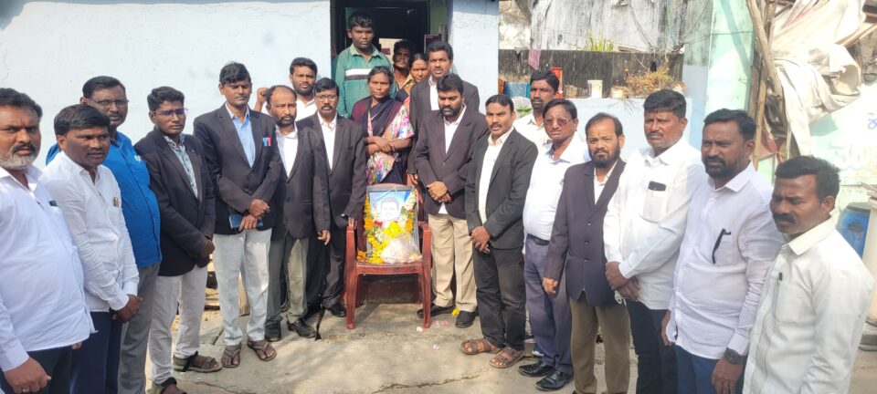 కోదాడ పట్టణంలో ఇటీవల అనుమానస్పదంగా మృతి చెందిన కర్ల రాజేష్ కుటుంబాన్ని జాతీయ మాదిగ లాయర్స్ ఫెడరేషన్ వ్యవస్థాపక అధ్యక్షులు రాష్ట్ర బార్ కౌన్సిల్ సభ్యులు భైరపాక జయకర్, మాదిగ లాయర్స్ ఫెడరేషన్ జాతీయ అధ్యక్షులు వీరదాసు వెంకటరత్నం మాదిగ, లాయర్స్ ఫెడరేషన్ తెలంగాణ రాష్ట్ర అధ్యక్షులు ఏర్పుల వీరేష్ కుమార్ పరామర్శించారు. కర్ల రాజేష్ చిత్రపటానికి పూలమాలలు వేసి ఘనంగా నివాళులర్పించారు. అనంతరం రాజేష్ తల్లి లలితతో మాట్లాడి రాజేష్ మృతికి గల కారణాలను అడిగి తెలుసుకున్నారు. అనంతరం వారు మాట్లాడుతూ ఎమ్మార్పీఎస్ వ్యవస్థాపక అధ్యక్షులు మందకృష్ణ మాదిగ నేతృత్వంలో కర్ల రాజేష్ మృతిపట్ల రాజేష్ కుటుంబ సభ్యులతో వివరాలను అడిగి తెలుసుకున్నామని, రాజేష్ కుటుంబానికి న్యాయం జరిగేంతవరకు మాదిగ లాయర్స్ అందరూ రాజేష్ కుటుంబానికి అండగా నిలిచి వారి తరఫున న్యాయం జరిగేంత వరకు పోరాడతామని ఈ సందర్భంగా తెలిపారు. రాజేష్ మృతికి కారణమైన అధికారులపై వెంటనే చర్యలు తీసుకోవాలని డిమాండ్ చేశారు. మాదిగ లాయర్స్ ఫెడరేషన్ తెలంగాణ రాష్ట్ర ప్రధాన అధికార ప్రతినిధి డప్పు మల్లయ్య, దావీదు, మోష, విశ్వనాధ్, కాశెట్టి కుమార్, సిద్దు, మరియు ఎమ్మార్పీఎస్ నాయకులు ఏపూరి రాజు మాదిగ, యలమర్తి రాము మాదిగ, కొండపల్లి ఆంజనేయులు,వడ్డేపల్లి కోటేష్, ఏపూరి సత్యరాజు,కుక్కల కృష్ణ , బచ్చలకూరి వెంకన్న, మేరిగా రామారావు, సోమపంగు సురేష్, జంగంపల్లి శ్రీను, పాముల శ్రావణ్ తదితరులు పాల్గొన్నారు.
